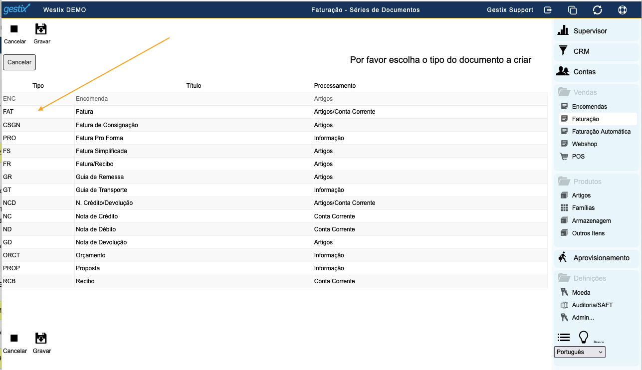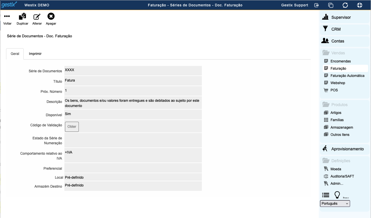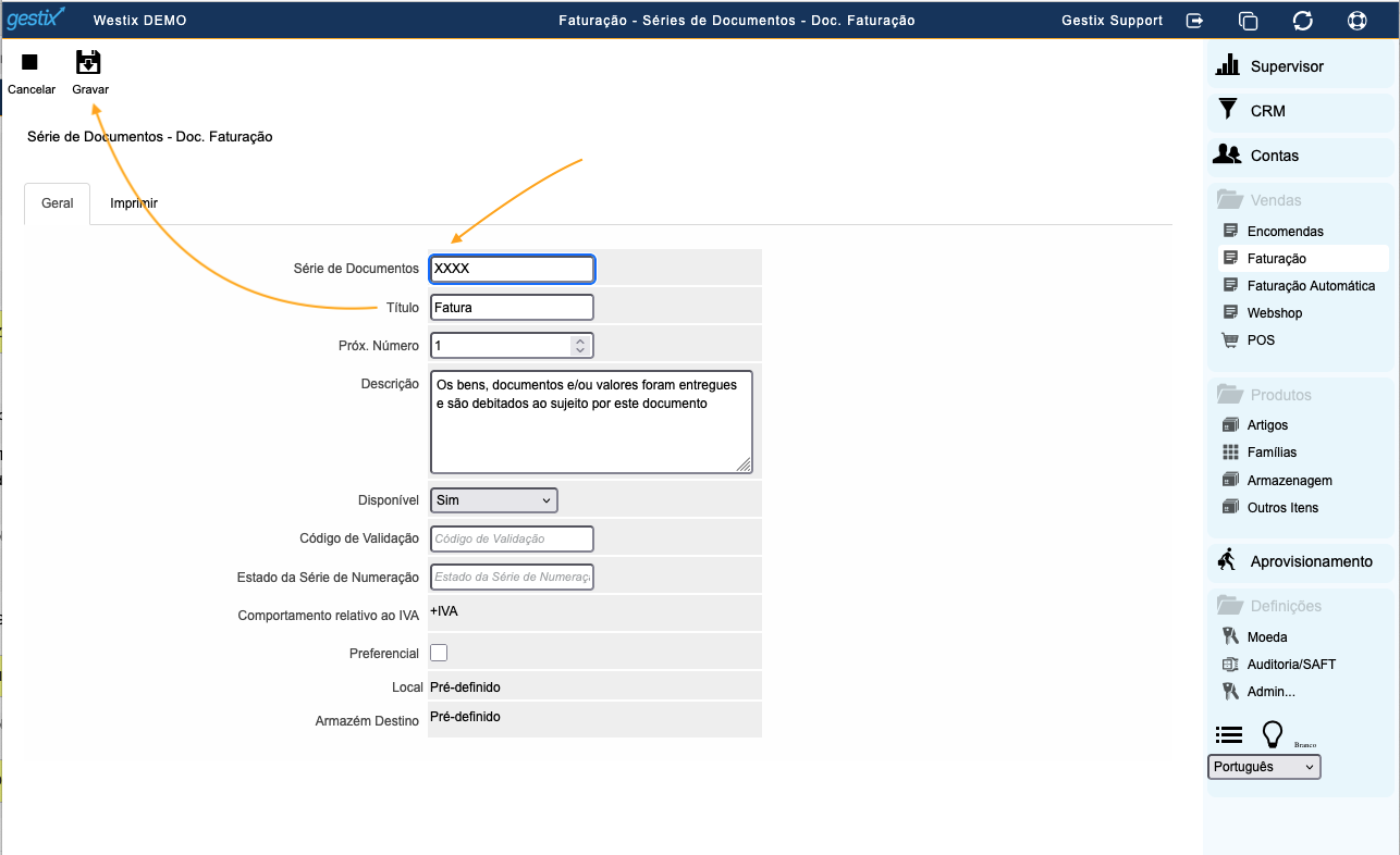 Clique em gravar, e pronto. A comunicação da série à AT e obtenção do respetivo Código de Validação será efetuada automaticamente no momento da emissão do primeiro documento daquela série.
