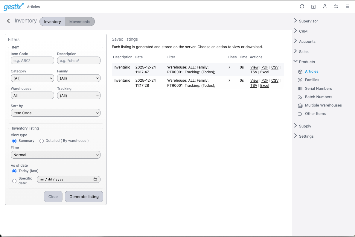 Productivity. The listing or report you select from the Gestix 8 menu is ready in seconds. You can immediately view it, print it, or download it directly to Excel—no more waiting.